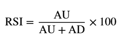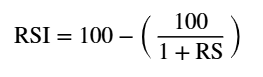 마지막으로, RS 값을 다음 공식에 대입하여 0에서 100 사이의 RSI 값을 산출합니다.